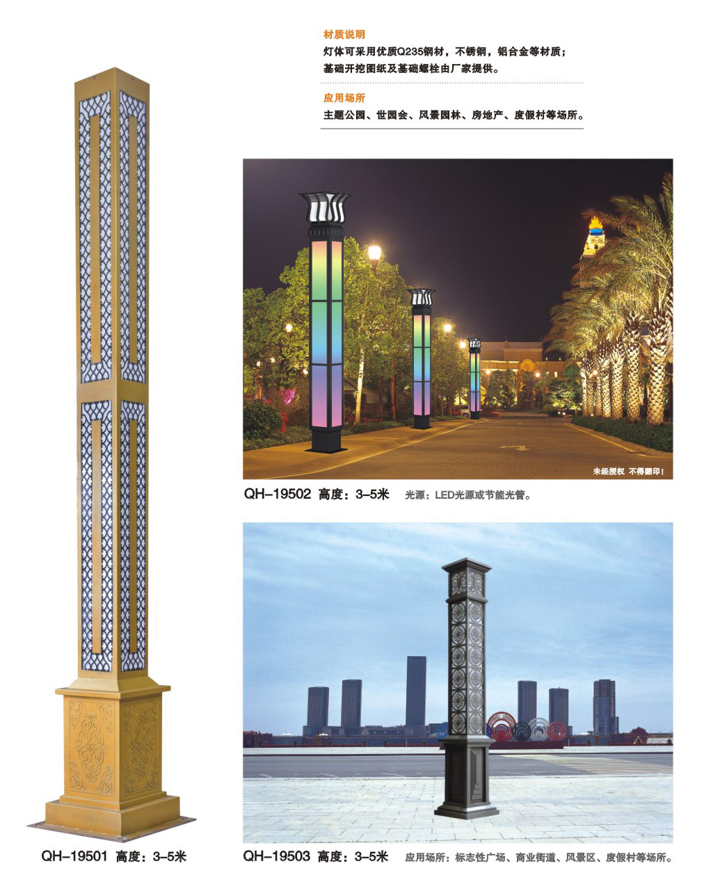 用途:景觀燈適用市政工程、園林亮化工程和公園、開發(fā)區(qū)、別墅區(qū)、廣場等戶外路燈照明工程