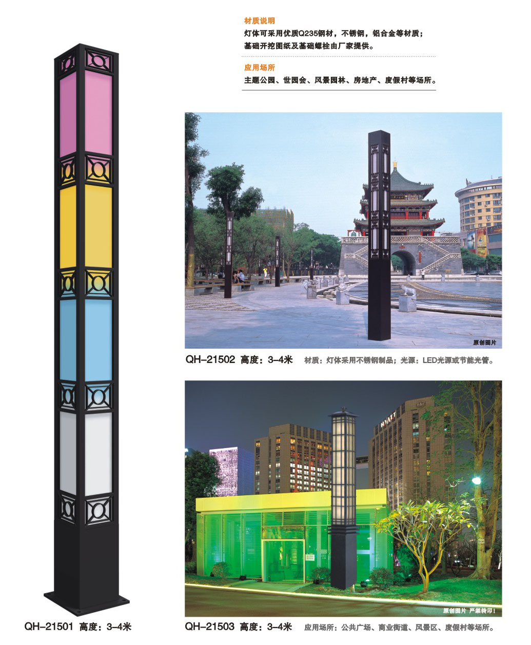 用途:景觀燈適用市政工程、園林亮化工程和公園、開發(fā)區(qū)、別墅區(qū)、廣場等戶外路燈照明工程
