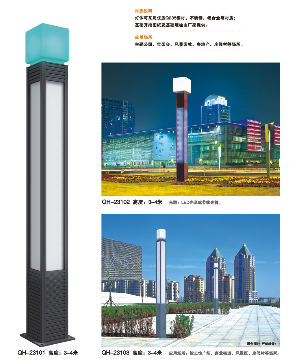 用途:景觀燈適用市政工程、園林亮化工程和公園、開發(fā)區(qū)、別墅區(qū)、廣場等戶外路燈照明工程
