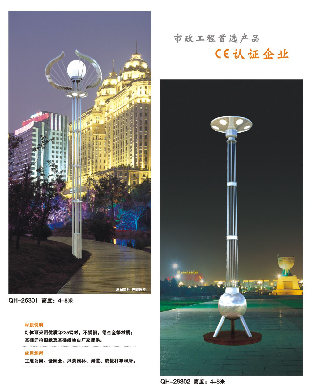 用途:景觀燈適用市政工程、園林亮化工程和公園、開發區、別墅區、廣場等戶外路燈照明工程