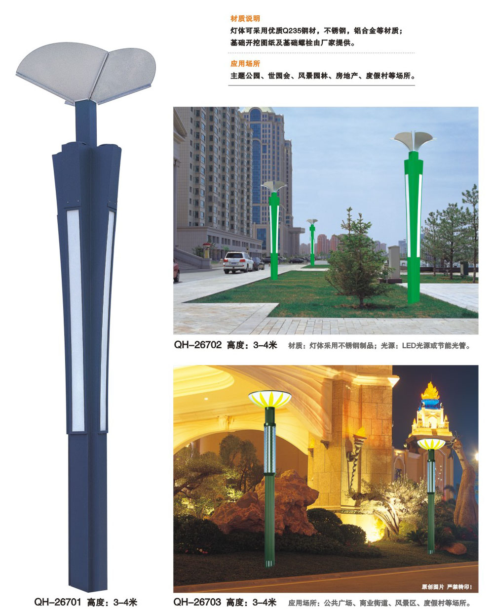 用途:景觀燈適用市政工程、園林亮化工程和公園、開發區、別墅區、廣場等戶外路燈照明工程