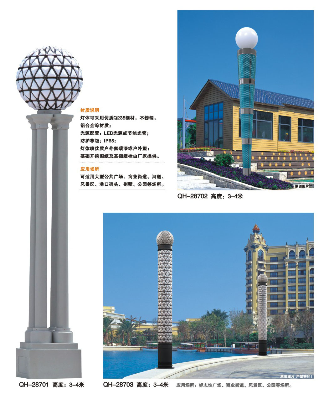 用途:景觀燈適用市政工程、園林亮化工程和公園、開發(fā)區(qū)、別墅區(qū)、廣場等戶外路燈照明工程