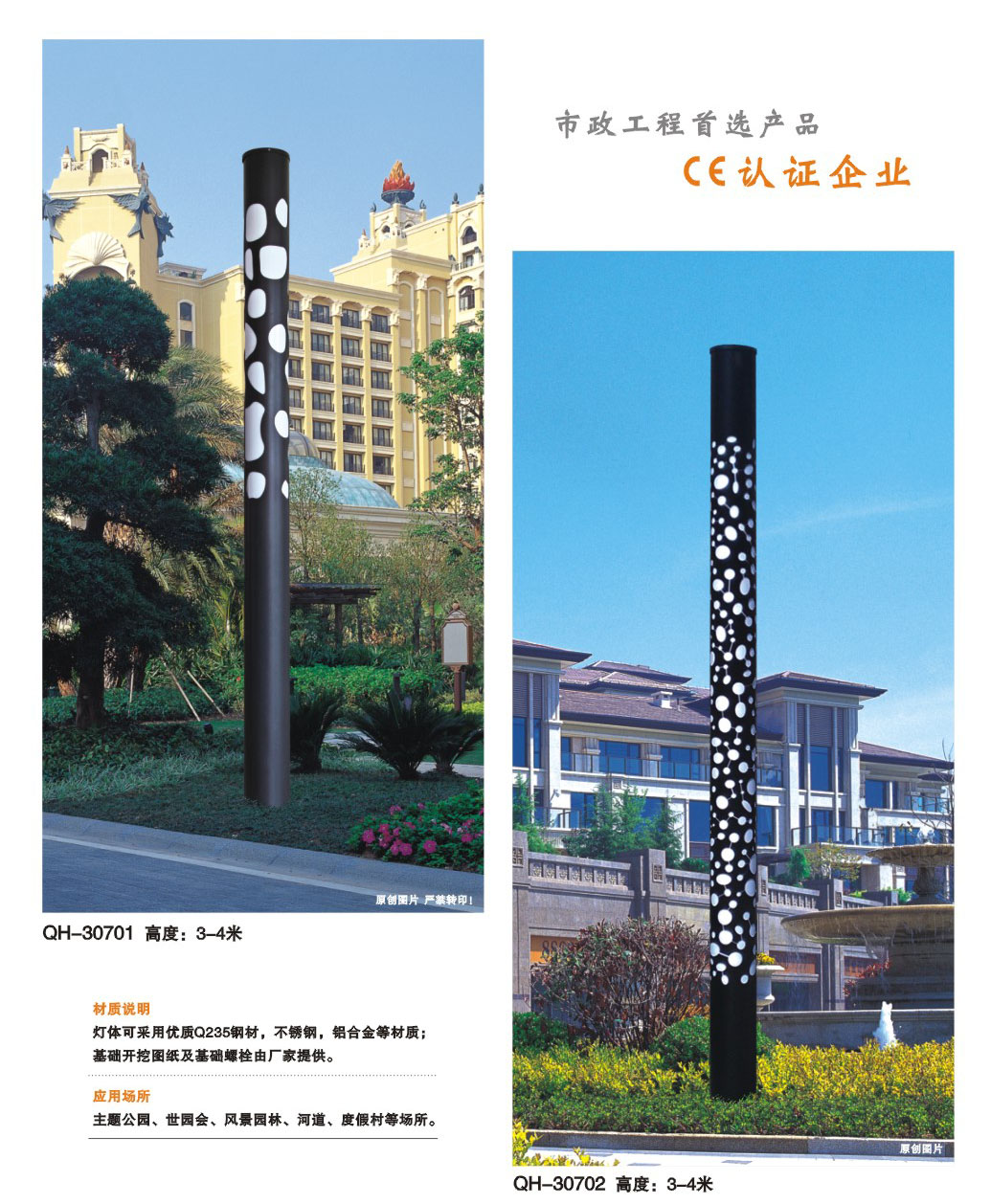 用途:景觀燈適用市政工程、園林亮化工程和公園、開發區、別墅區、廣場等戶外路燈照明工程