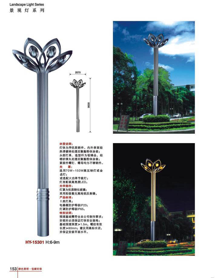 用途:景觀燈適用市政工程、園林亮化工程和公園、開發區、別墅區、廣場等戶外路燈照明工程