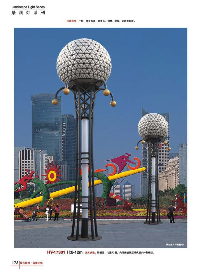 用途:景觀燈適用市政工程、園林亮化工程和公園、開發區、別墅區、廣場等戶外路燈照明工程