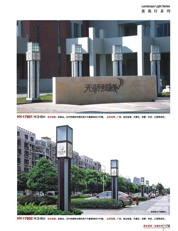 用途:景觀燈適用市政工程、園林亮化工程和公園、開發區、別墅區、廣場等戶外路燈照明工程