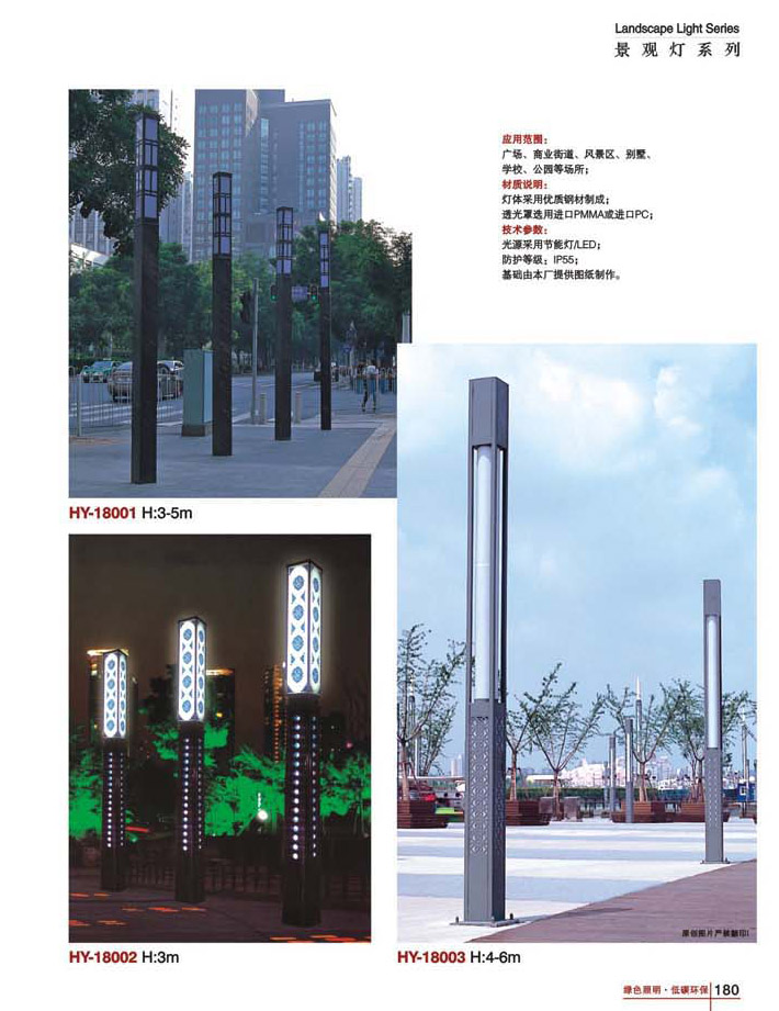 用途:景觀燈適用市政工程、園林亮化工程和公園、開發區、別墅區、廣場等戶外路燈照明工程