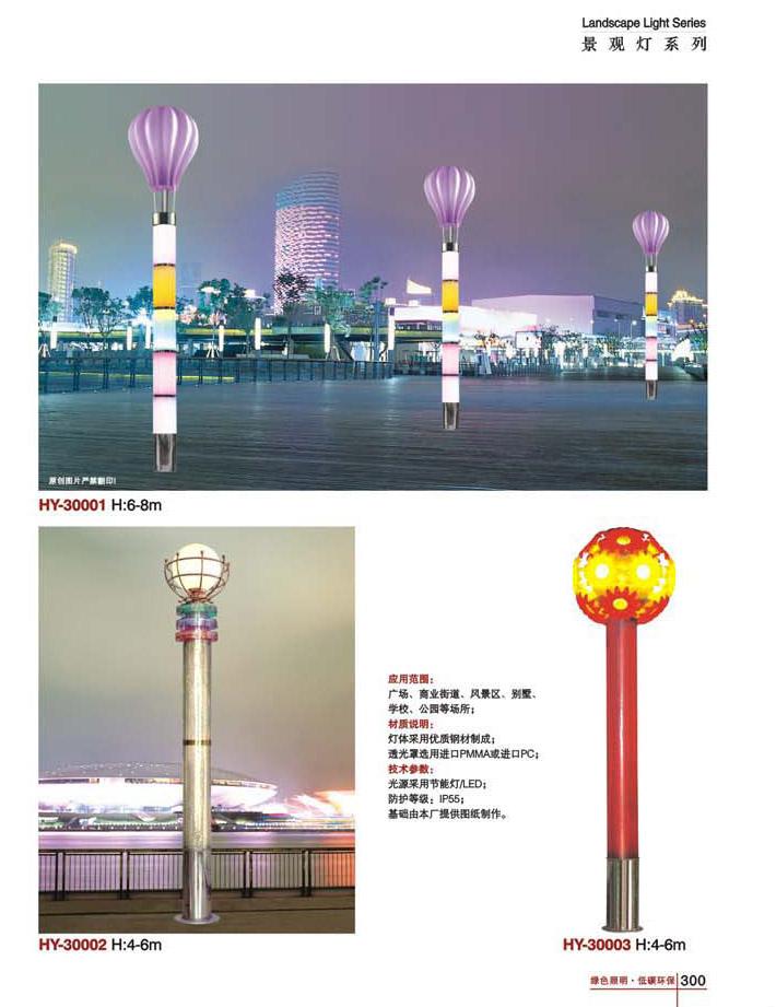 用途:景觀燈適用市政工程、園林亮化工程和公園、開發(fā)區(qū)、別墅區(qū)、廣場(chǎng)等戶外路燈照明工程