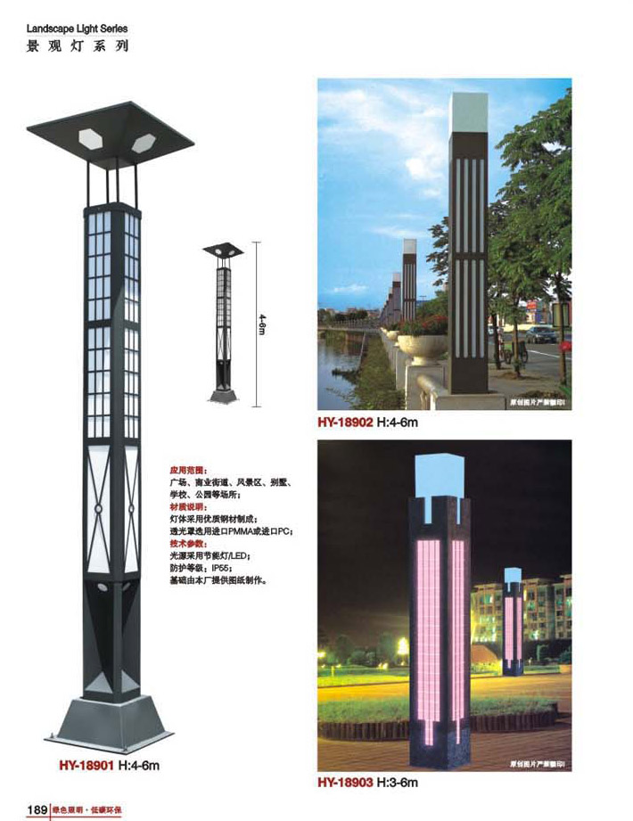 用途:景觀燈適用市政工程、園林亮化工程和公園、開發區、別墅區、廣場等戶外路燈照明工程