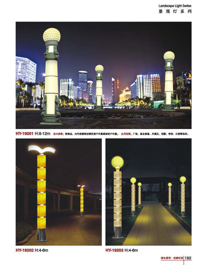 用途:景觀燈適用市政工程、園林亮化工程和公園、開發(fā)區(qū)、別墅區(qū)、廣場等戶外路燈照明工程