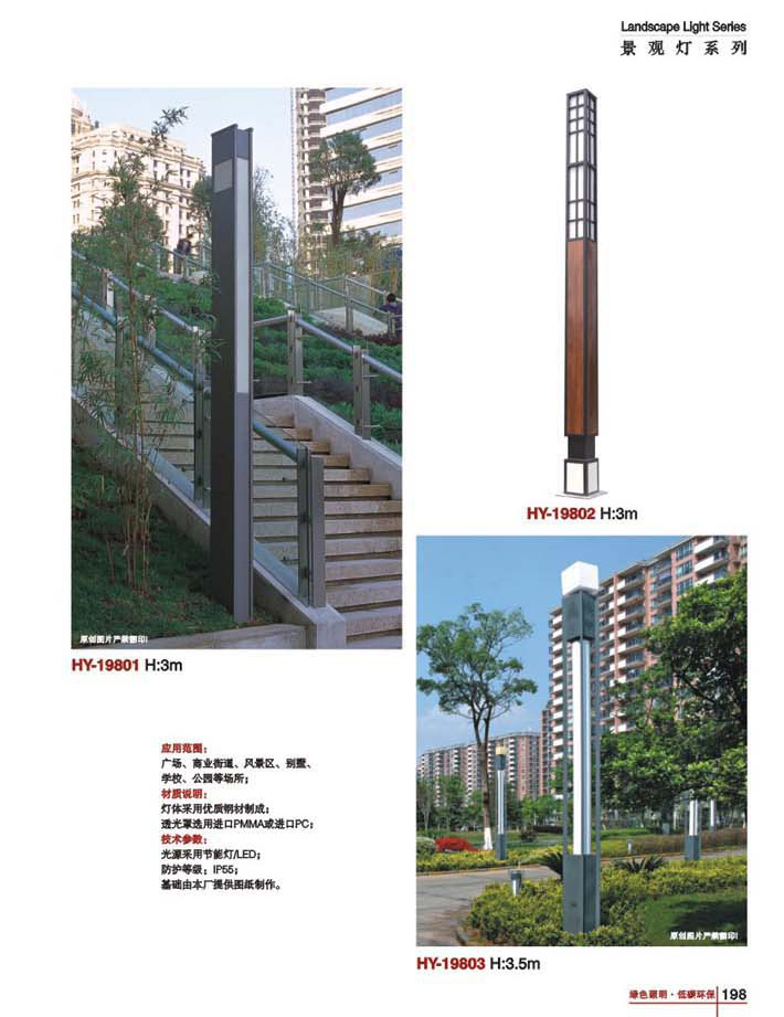 用途:景觀燈適用市政工程、園林亮化工程和公園、開發區、別墅區、廣場等戶外路燈照明工程