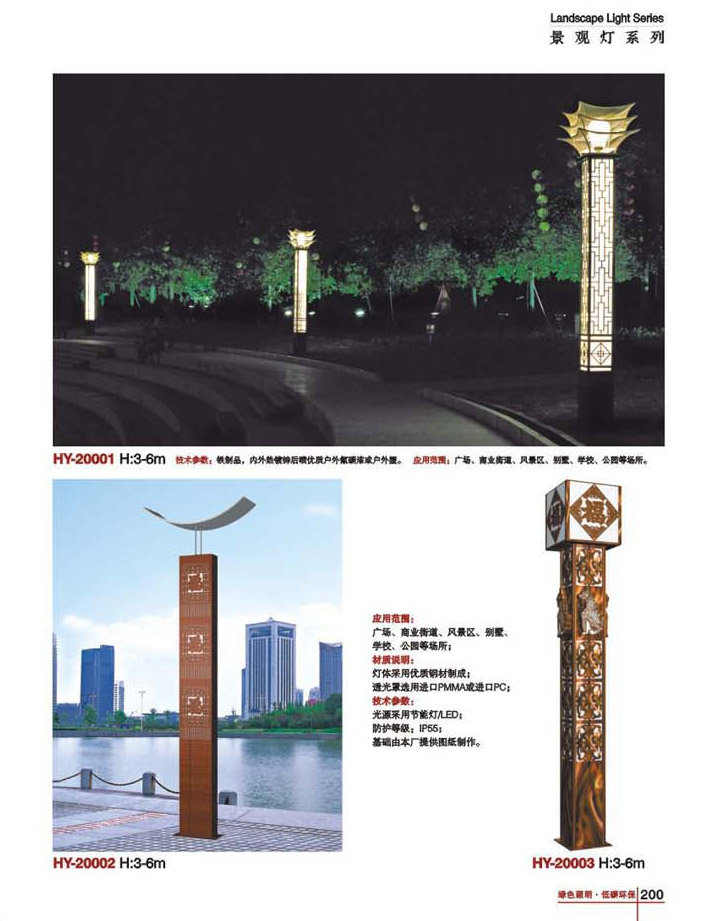 用途:景觀燈適用市政工程、園林亮化工程和公園、開發區、別墅區、廣場等戶外路燈照明工程