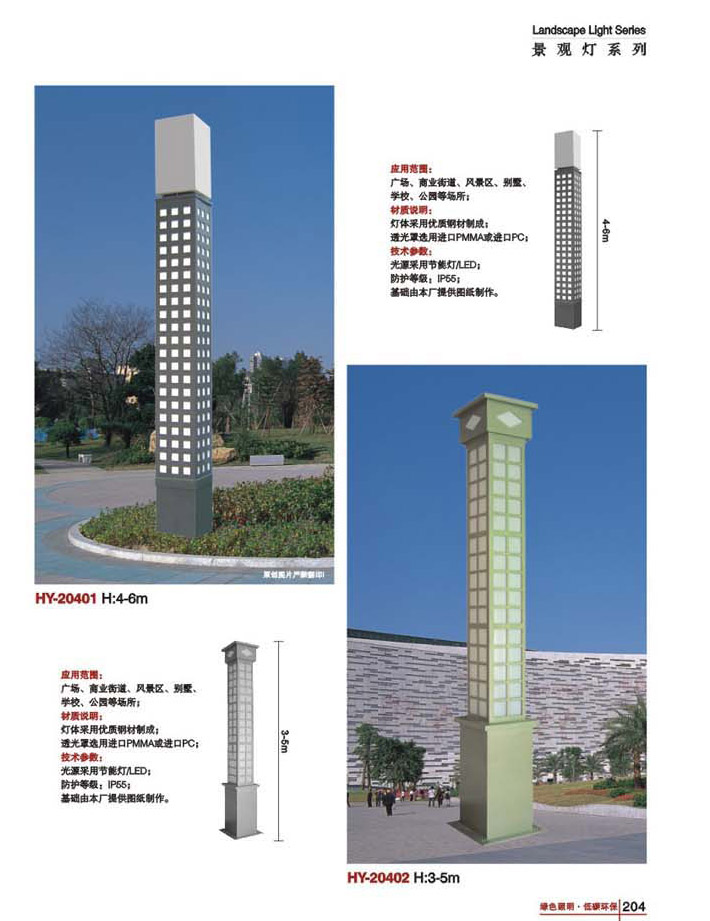 用途:景觀燈適用市政工程、園林亮化工程和公園、開發(fā)區(qū)、別墅區(qū)、廣場等戶外路燈照明工程