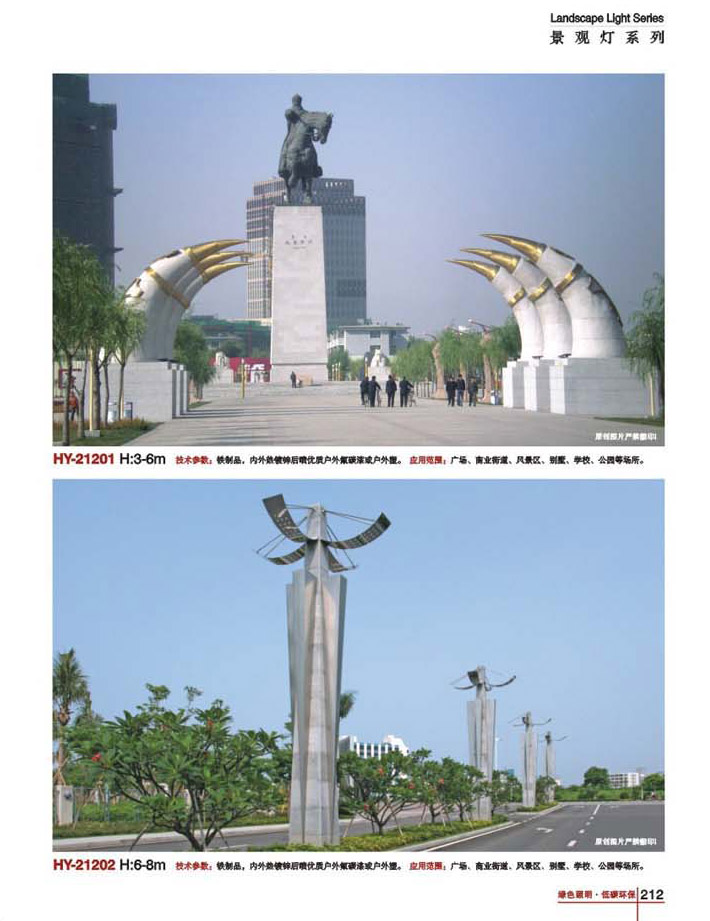 用途:景觀燈適用市政工程、園林亮化工程和公園、開發(fā)區(qū)、別墅區(qū)、廣場等戶外路燈照明工程