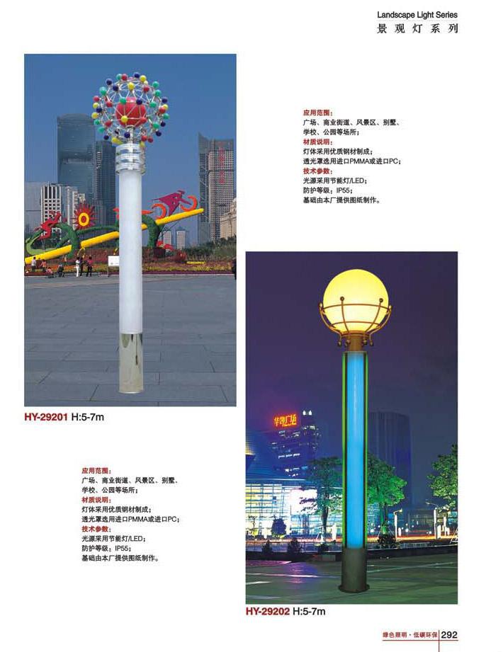 用途:景觀燈適用市政工程、園林亮化工程和公園、開發(fā)區(qū)、別墅區(qū)、廣場等戶外路燈照明工程