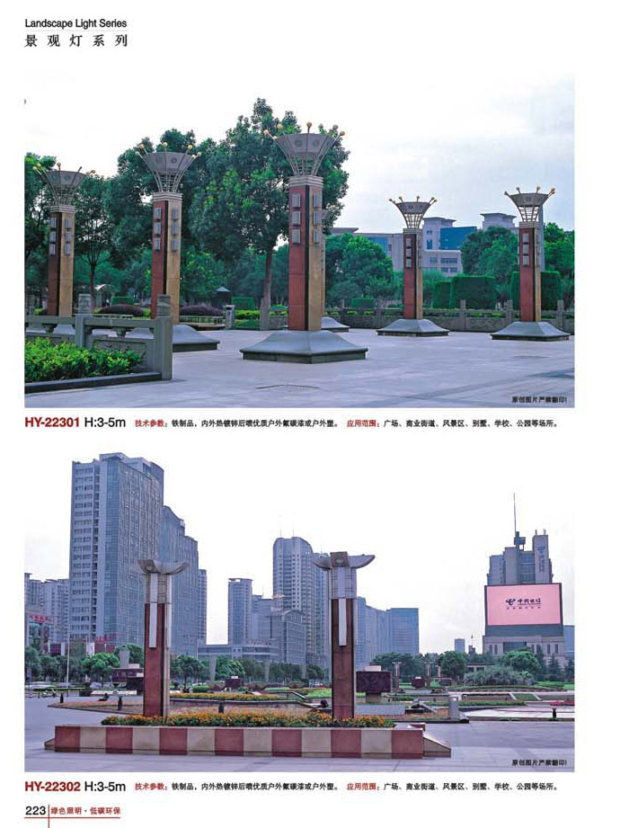 用途:景觀燈適用市政工程、園林亮化工程和公園、開發區、別墅區、廣場等戶外路燈照明工程