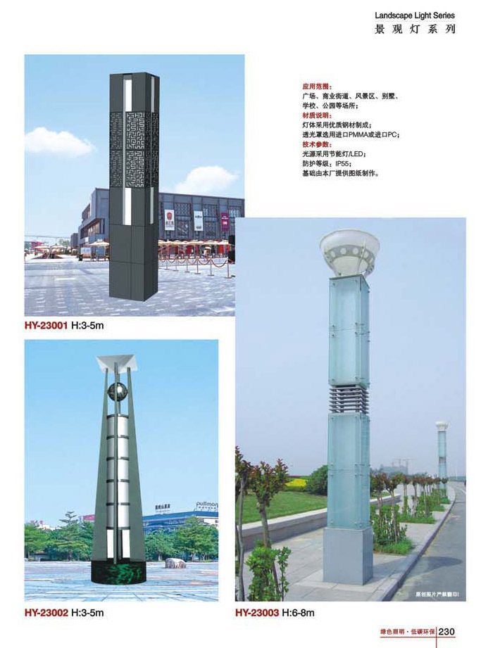 用途:景觀燈適用市政工程、園林亮化工程和公園、開發區、別墅區、廣場等戶外路燈照明工程