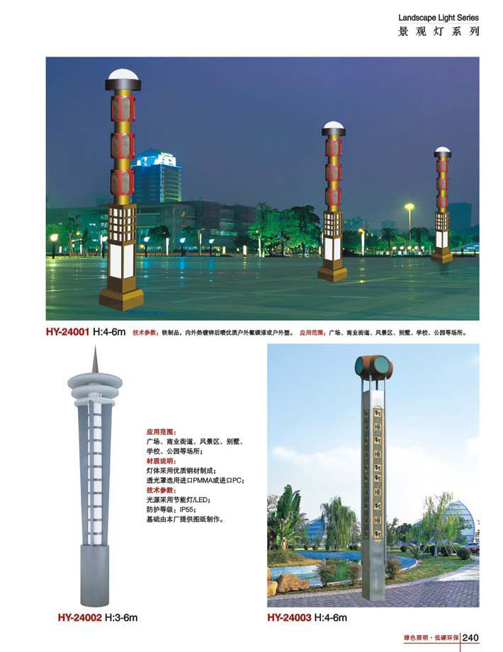 用途:景觀燈適用市政工程、園林亮化工程和公園、開發區、別墅區、廣場等戶外路燈照明工程
