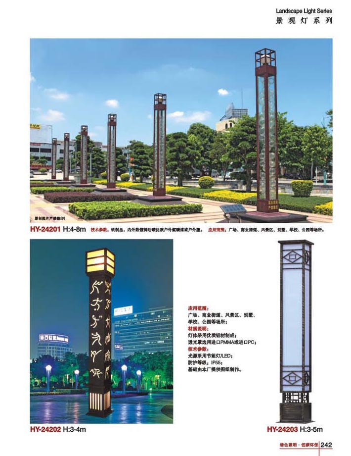 用途:景觀燈適用市政工程、園林亮化工程和公園、開發區、別墅區、廣場等戶外路燈照明工程