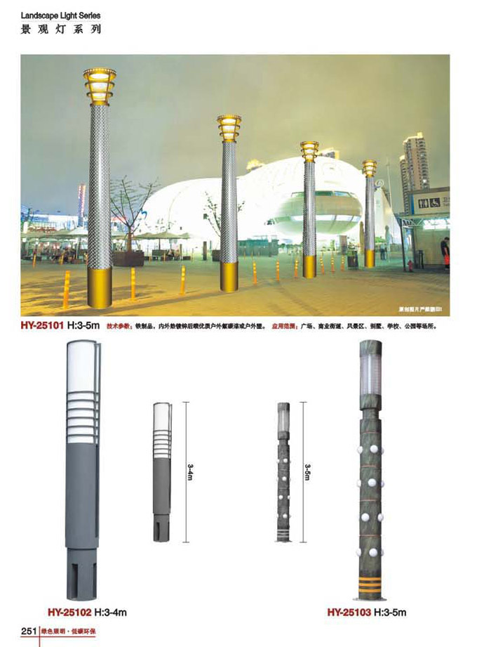用途:景觀燈適用市政工程、園林亮化工程和公園、開發區、別墅區、廣場等戶外路燈照明工程