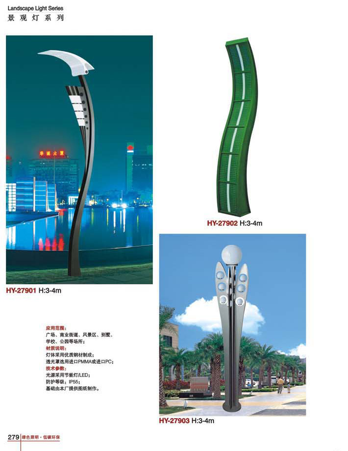 用途:景觀燈適用市政工程、園林亮化工程和公園、開(kāi)發(fā)區(qū)、別墅區(qū)、廣場(chǎng)等戶(hù)外路燈照明工程