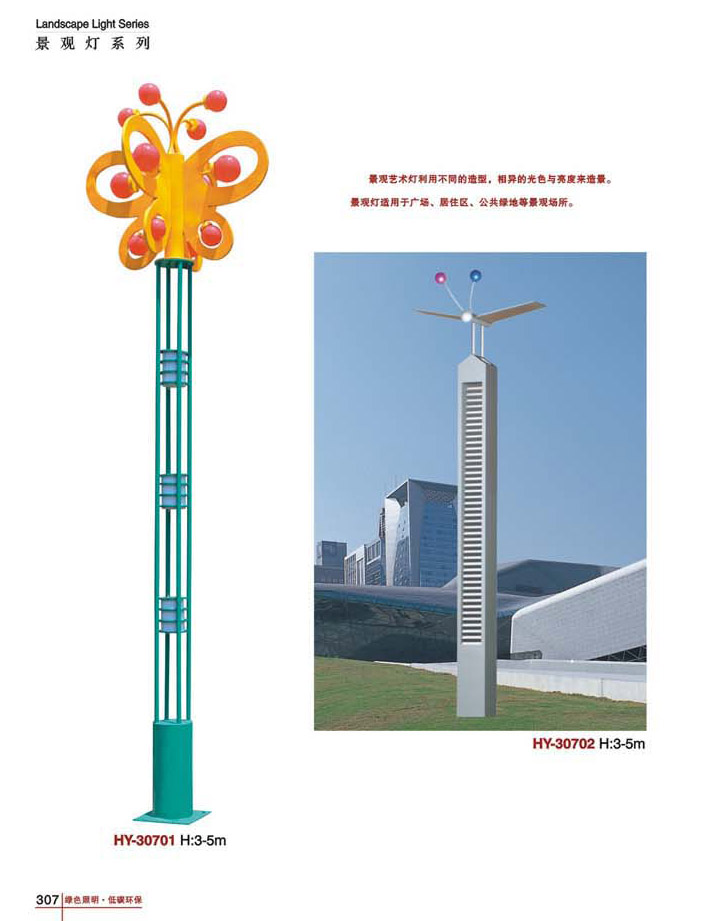 用途:景觀燈適用市政工程、園林亮化工程和公園、開發(fā)區(qū)、別墅區(qū)、廣場等戶外路燈照明工程