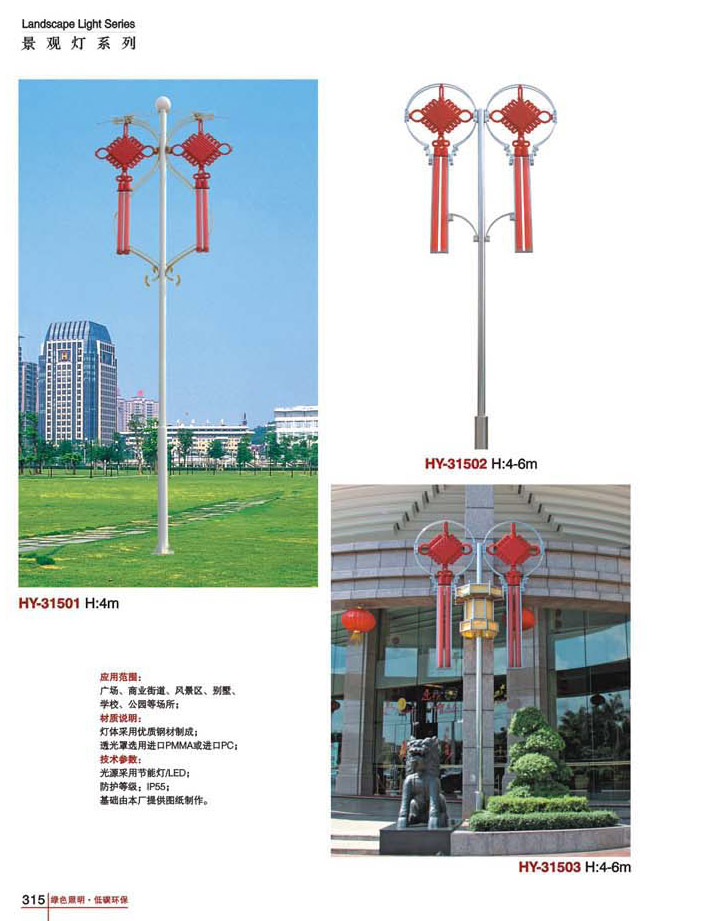 用途:景觀燈適用市政工程、園林亮化工程和公園、開發區、別墅區、廣場等戶外路燈照明工程