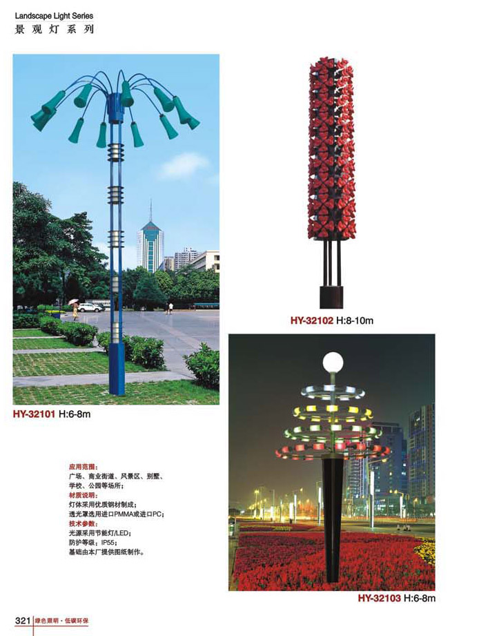 用途:景觀燈適用市政工程、園林亮化工程和公園、開發區、別墅區、廣場等戶外路燈照明工程