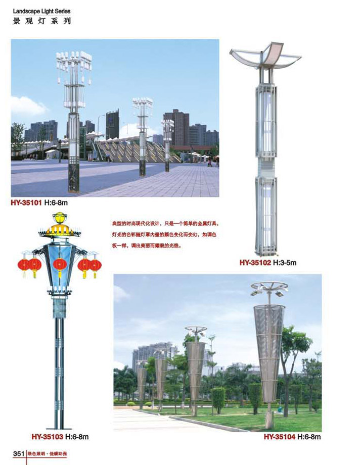 用途:景觀燈適用市政工程、園林亮化工程和公園、開發區、別墅區、廣場等戶外路燈照明工程