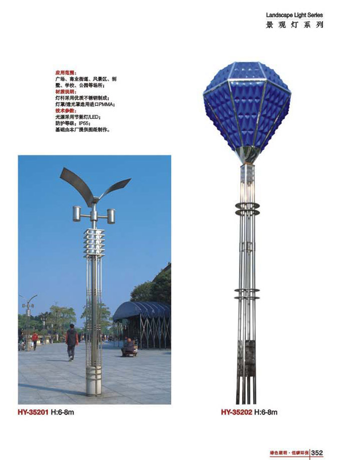 用途:景觀燈適用市政工程、園林亮化工程和公園、開發區、別墅區、廣場等戶外路燈照明工程