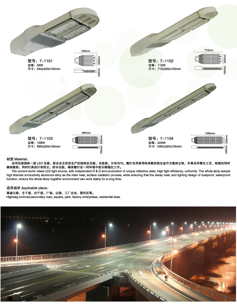鋁材的選用會影響燈體的壽命、外觀。博耀照明一直致力于生產高品質led路燈,所有燈具采用一級成材鋁散熱材質,高導熱系數快速散熱,完美的解決散熱問題,保證led壽命。外觀優美、高檔