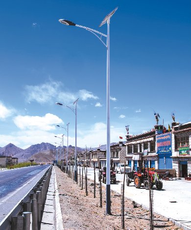 獨立供電:太陽能路燈內置電池,能夠在夜間或陰雨天自主供電,保證道路持續照明。