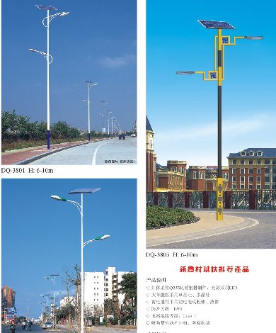 在新農(nóng)村建設(shè)過(guò)程中,6米太陽(yáng)能路燈是使用最多的路燈,他適合安裝于路面寬度在5-10米的道路,一般可以采用單側(cè)安裝,如果道路寬度12-15米,就可采用雙側(cè)道路對(duì)裝,我廠專業(yè)生產(chǎn)各種造型的太陽(yáng)能路燈,樣式也可以按照客戶提供的圖紙或效果圖生產(chǎn)加工。
