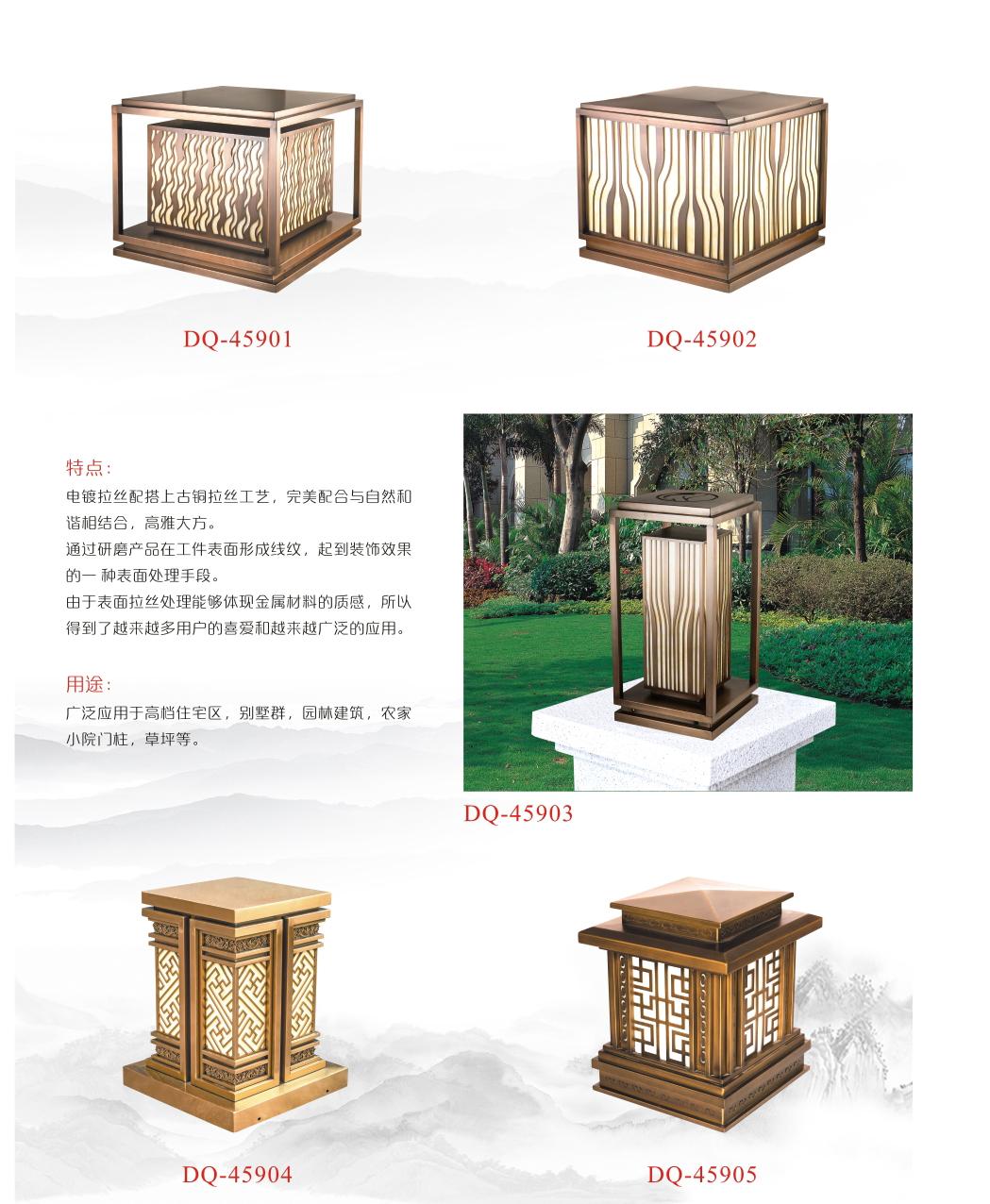 您之前沒做過小區庭院燈,今天剛接到一個小區庭院燈的項目,正在尋價中和煩惱這個庭院燈是如何安裝,安裝要注意什么事項。您看完之后您可以成為專家。 在庭院燈采購回來之前,首先把小區的電纜線路鋪設好和分好組線(一般分兩組),然后做好水泥噸,其次在把預埋件(地腳螺絲)放在水泥噸里面,倒好水泥,露出8CM到10CM的螺母和電線線。等到庭院燈回來,接好線亮燈即可。