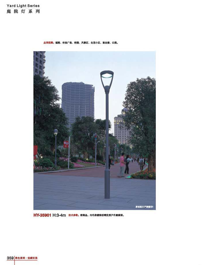 用途:庭院燈適用市政工程、園林亮化工程和電力局、開發區、別墅區、廣場等戶外路燈照明工程