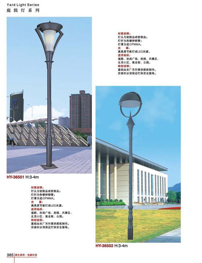 用途:庭院燈適用市政工程、園林亮化工程和電力局、開發區、別墅區、廣場等戶外路燈照明工程