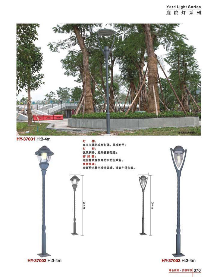 性能:庭院燈效率高,照射角度大,透霧性強,照度均勻,功率因數>0.90,壽命長達50000小時,能滿足庭院分散照明要求