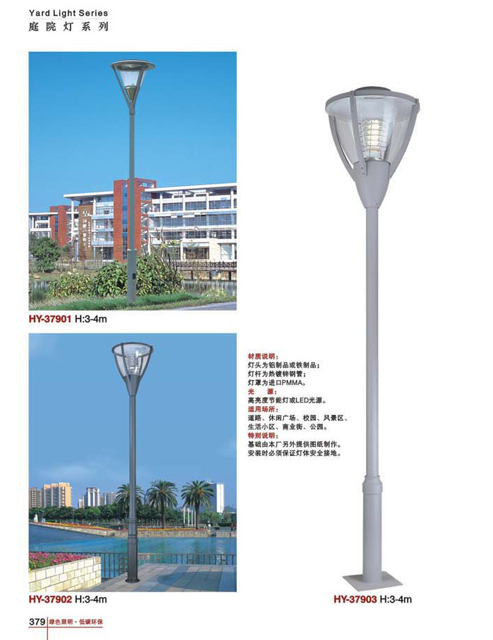 用途:庭院燈適用市政工程、園林亮化工程和電力局、開發(fā)區(qū)、別墅區(qū)、廣場(chǎng)等戶外路燈照明工程