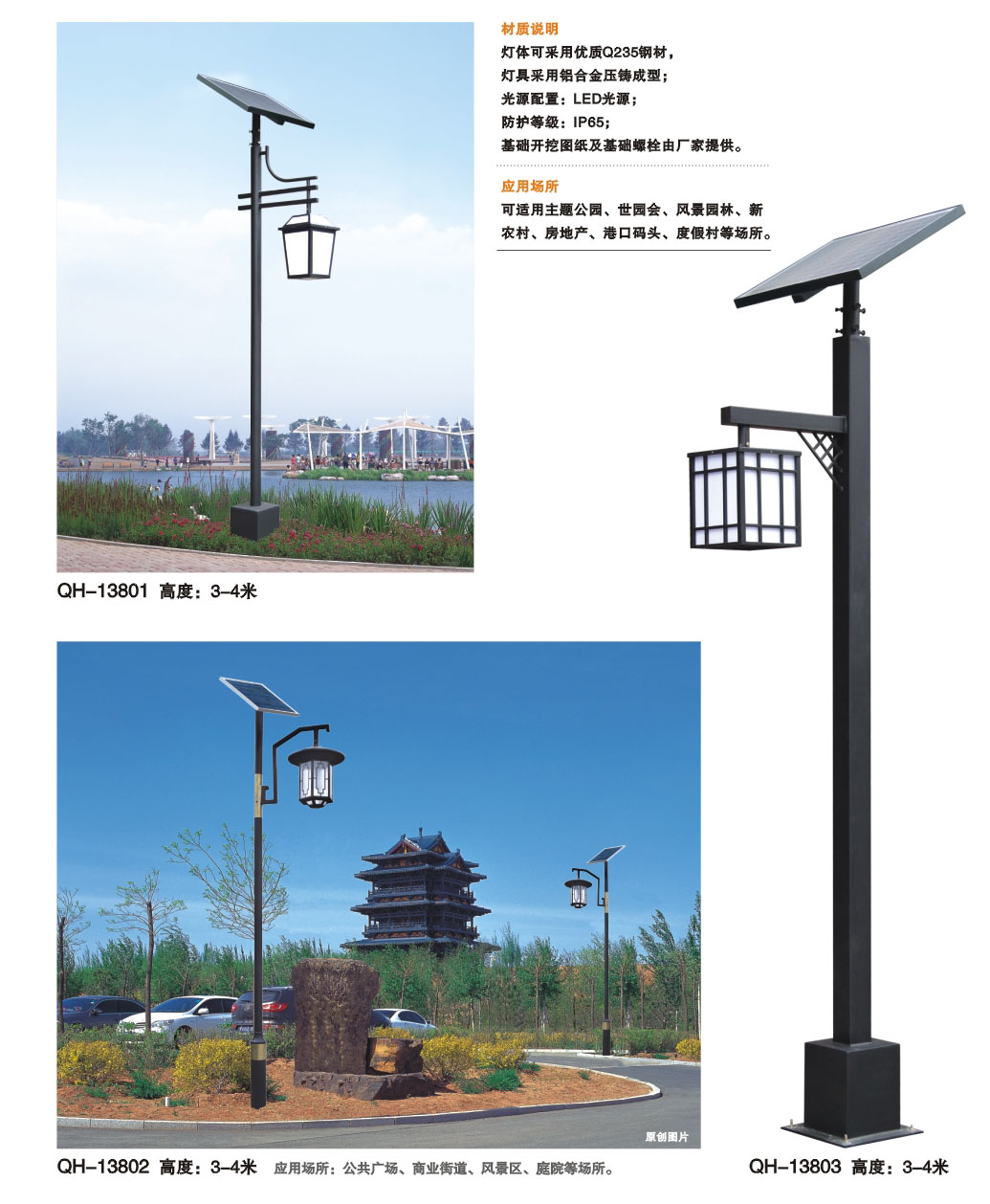 太陽能庭院燈QH-10301(簡約太陽能庭院燈)適用于公園、廣場、校園、市政道路等眾多場所,能夠起到非常不錯的照明與景觀功能,是照明工程優質優選產品